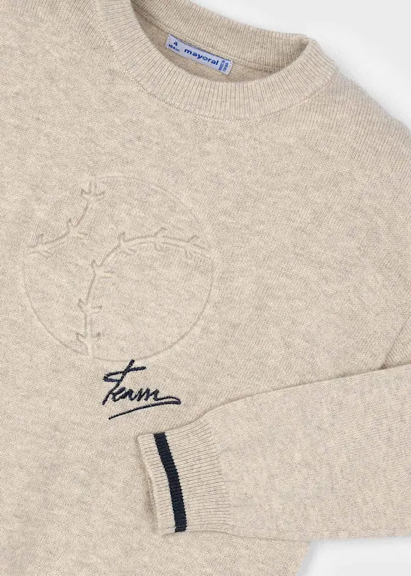 Weicher Pullover von Mayoral für Jungen – klassisch geschnitten mit feiner Stickerei auf der Brust.