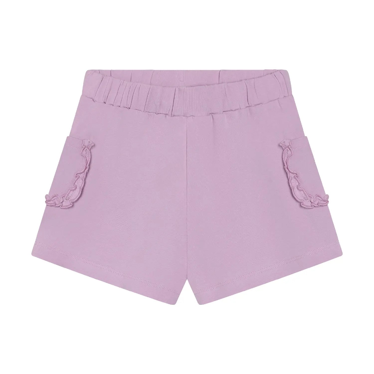 Diese trendigen Shorts für Mädchen von Minymo in stilvollem Lila sind ein echtes Highlight. Die süßen Rüschendetails an den Taschen machen sie besonders feminin.